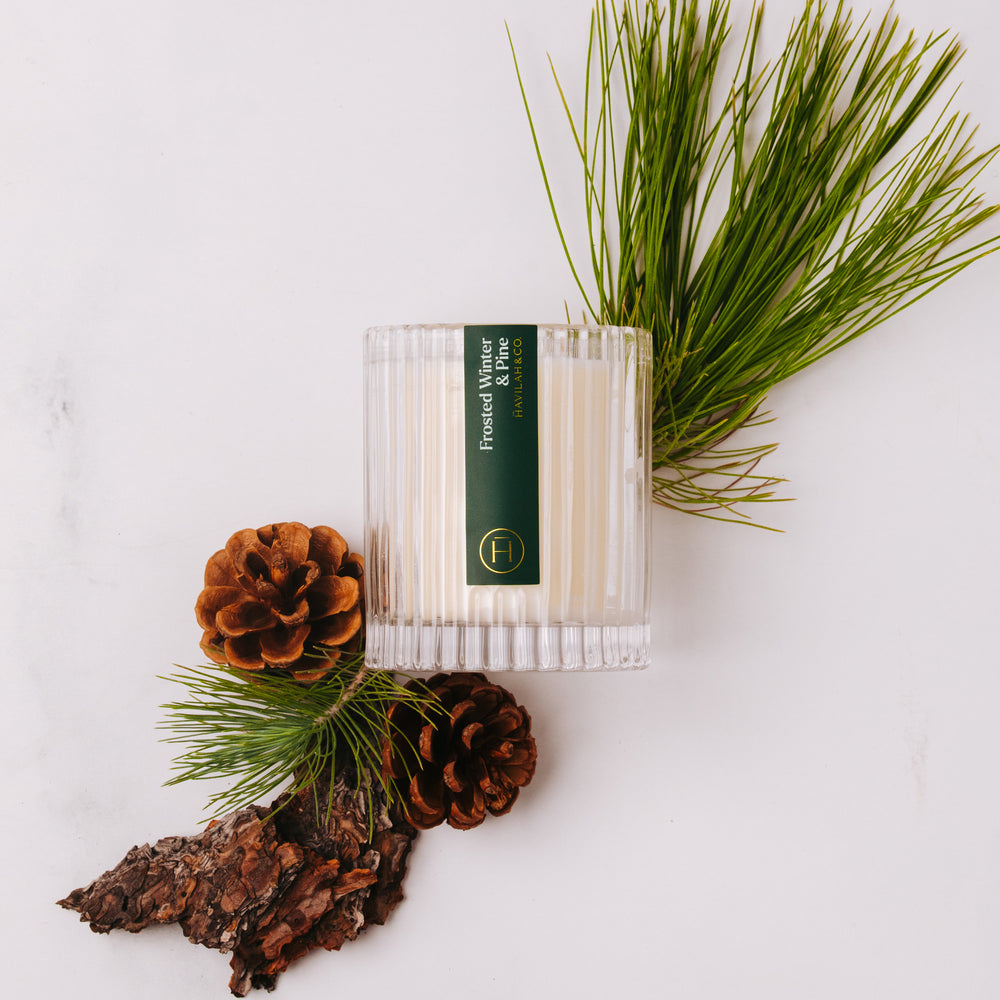 Frosted Winter & Pine will transport you to a winter wonderland. Fir needle, winter air, and pine sap create a fresh opening, while amber, fir balsam, and oakmoss add warmth. Cedar, cashmere woods, and musk provide a cozy effect. This scent embodies the holiday season's magic, inviting celebration with joy and wonder.
