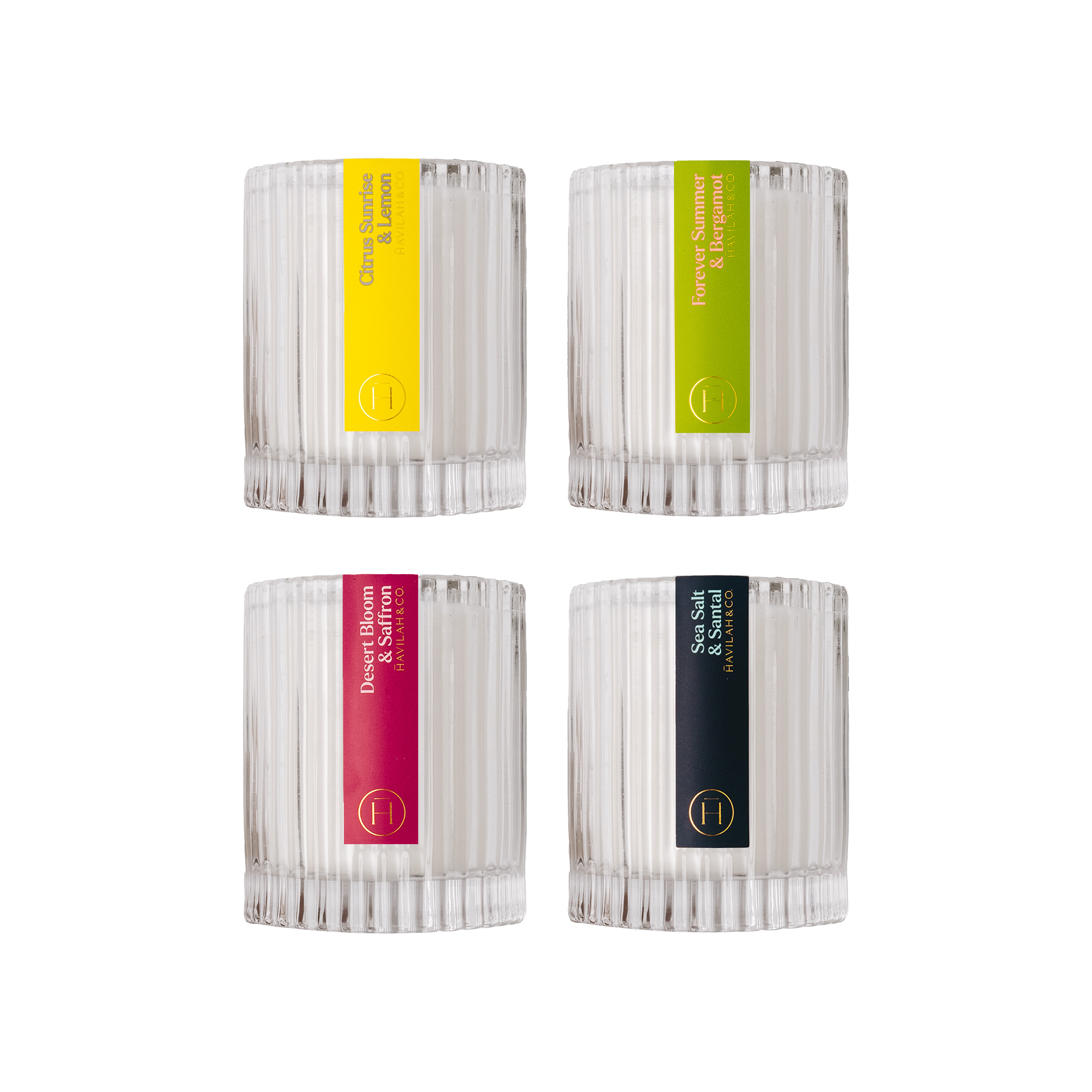 Introducing the Purity Collection Bundle, includes 4 amazing-smelling candles: Desert Bloom & Saffron (1), zesty Citrus Sunrise & Lemon (1), calming Sea Salt & Santal (1), and uplifting Forever Summer & Bergamot (1) for a vibrant full-home experience.